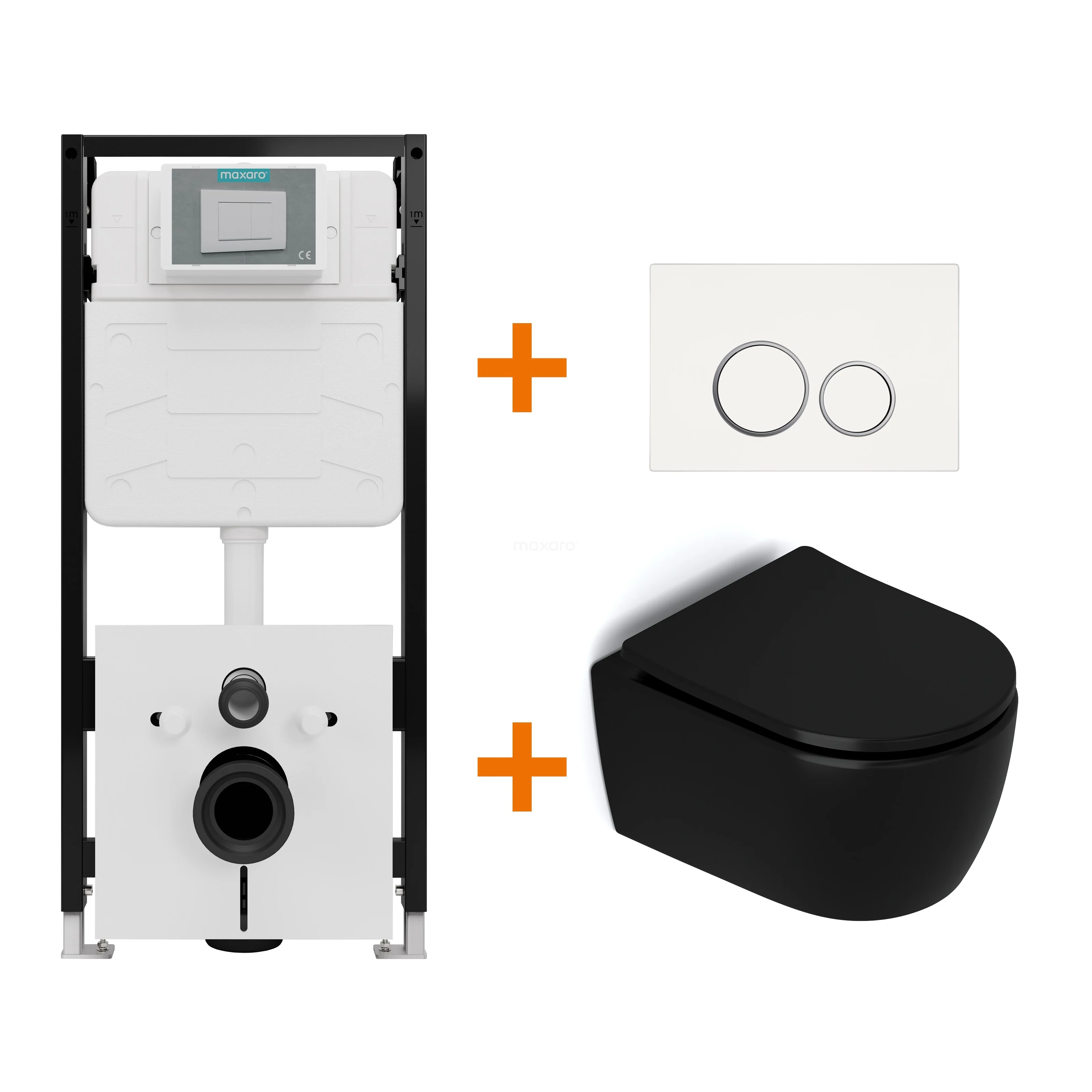 WC-Set Matt Schwarz ohne Spülrand + Maxaro Flush Slim Pro Unterputzspülkasten mit Geräuschisolierung