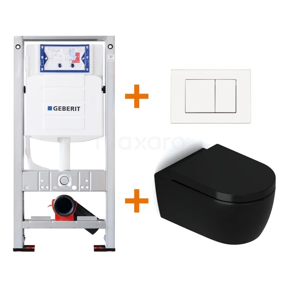 WC-Set Matt Schwarz ohne Spülrand + Maxaro Flush Slim Pro Unterputzspülkasten mit Geräuschisolierung