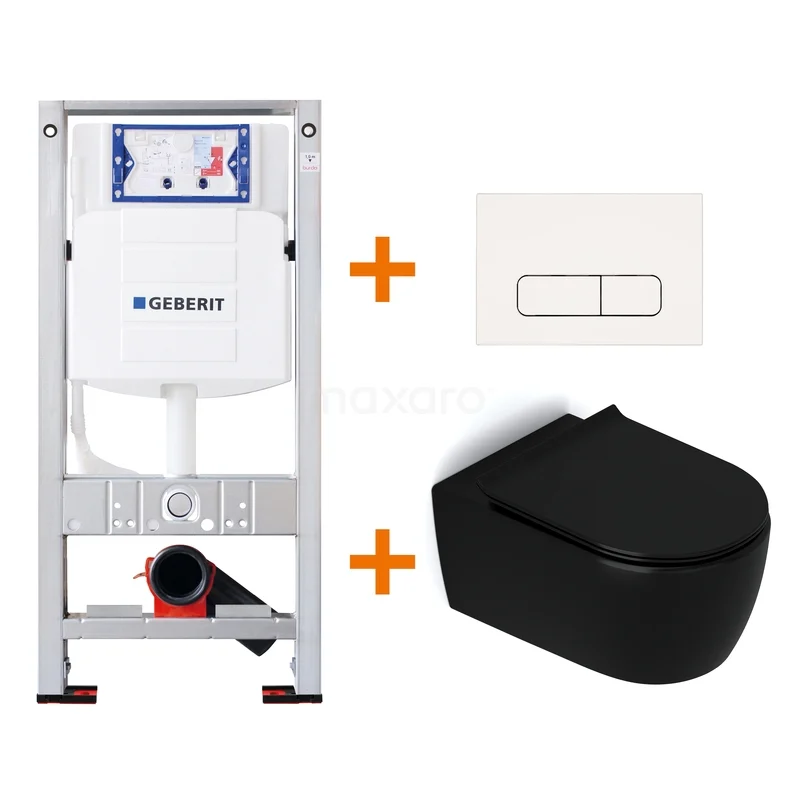 WC-Set Matt Schwarz ohne Spülrand + Maxaro Flush Slim Pro Unterputzspülkasten mit Geräuschisolierung