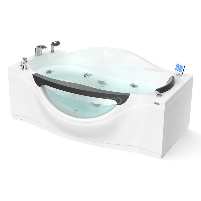 Einzigartiges Design Der glänzende Whirlpool hat ein rechteckiges Design und ist mit Chrom-Elementen versehen. Das Glasfenster an der Vorderseite verleiht ihm ein einzigartiges und besonderes Design. Darüber hinaus setzen der schwarze Rand und das Badekissen einen auffälligen Akzent. Das Kissen sorgt außerdem für zusätzlichen Komfort und ist sehr angenehm, wenn man im Bad liegt.