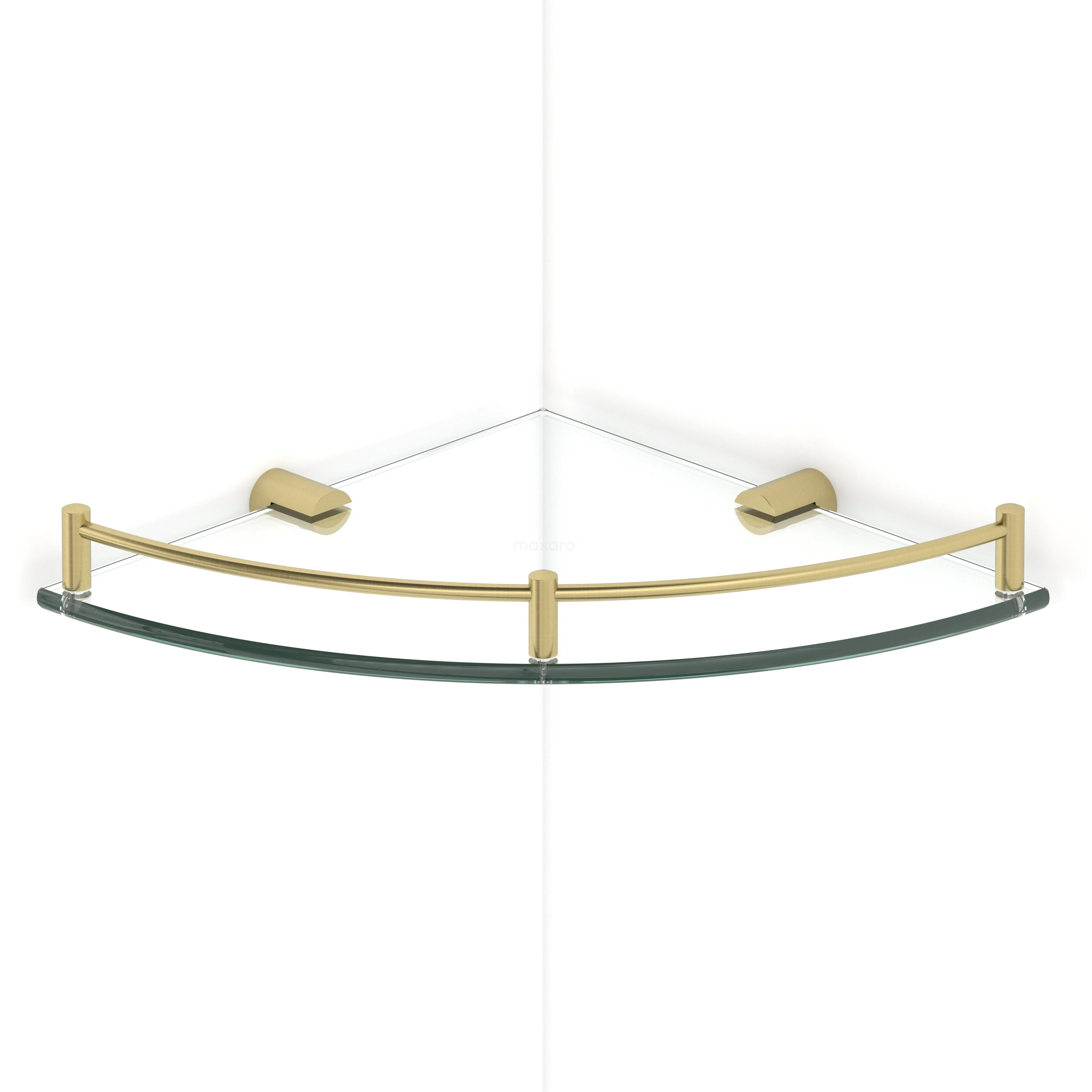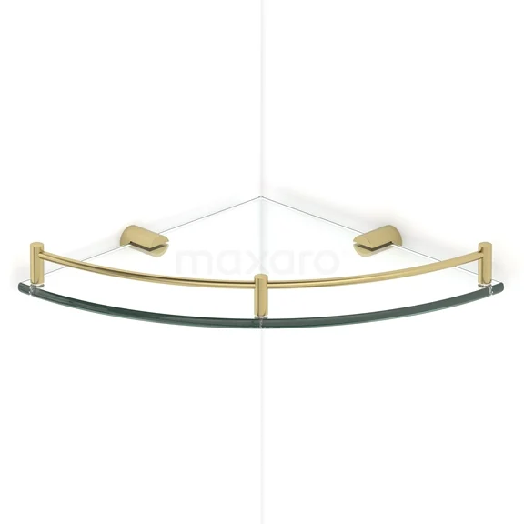 Das stilvolle Eckregal Radius bietet Ihnen in Ihrer Dusche zusätzlichen Platz zum Abstellen von Dingen. Dieses viertelrunde Stück ist mit einem Glaseinsatz ausgestattet und in trendigem Hellgold ausgeführt. Durch die Verwendung von PVD ist die Gold-Oberfläche sehr widerstandsfähig, sodass Sie lange Freude an dem schönen Design haben werden. Außerdem lässt sich die Ablage mit dem mitgelieferten Befestigungsmaterial einfach an die Wand hängen.