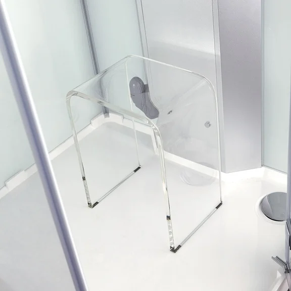 Mit diesem Duschsitz können Sie Ihre Dusche oder Dampfkabine im Sitzen genießen, ohne lange aufstehen zu müssen. Dieses Modell ist aus hartem, klarem Acryl gefertigt und hat eine transparente Farbe. Trotz seines geringen Gewichts hat der Duschsitz eine maximale Tragfähigkeit von 100 kg. Das geringe Gewicht ermöglicht es Ihnen, den Stuhl einfach aus der Dusche zu entfernen, wenn Sie ihn nicht brauchen. In diesen Momenten bietet der Duschsitz eine Lösung als Ablagefläche. Ihre Handtücher oder Kleidung sind dann nach dem Duschen leicht zu erreichen.