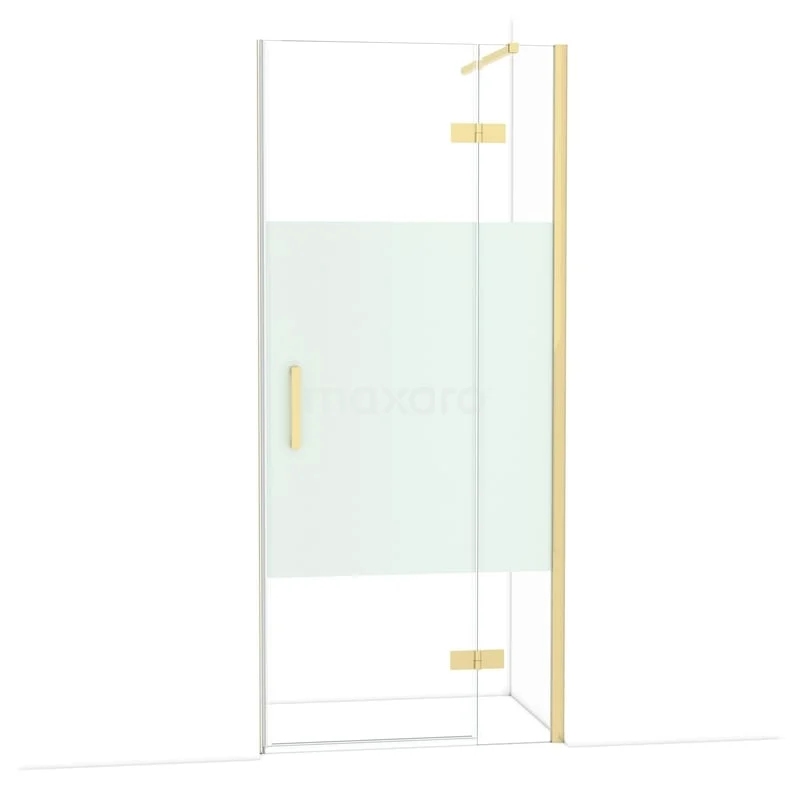 De Diamond-draaideur van 90 cm is ideaal om jouw douchenis af te sluiten. Dit exemplaar heeft een verfijnd en luxe design van glanzend lichtgoud en is voorzien van hoogwaardige scharnieren, muurprofiel en een verticaal handvat. Het helder glas met matte strook zorgt voor meer privacy. Door de verstelbaarheid maak je de douchedeur gemakkelijk passend. De totale breedte is verstelbaar van 89,8 tot en met 91,3 cm.