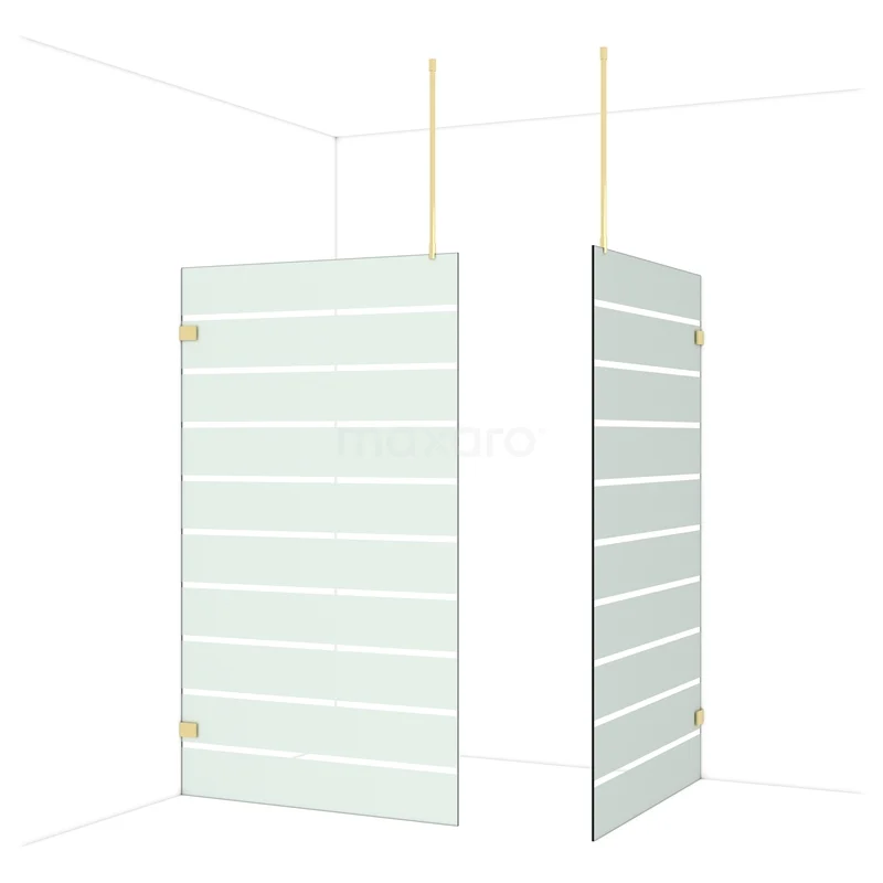 Diamond Inloopdouche | 120x120 cm Glanzend lichtgoud Helder met matte strepen 2 vaste wanden