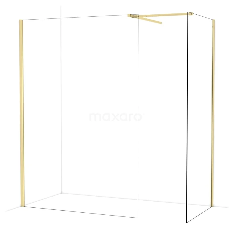Diamond Inloopdouche | 140x90 cm Glanzend lichtgoud Helder glas 2 vaste wanden
