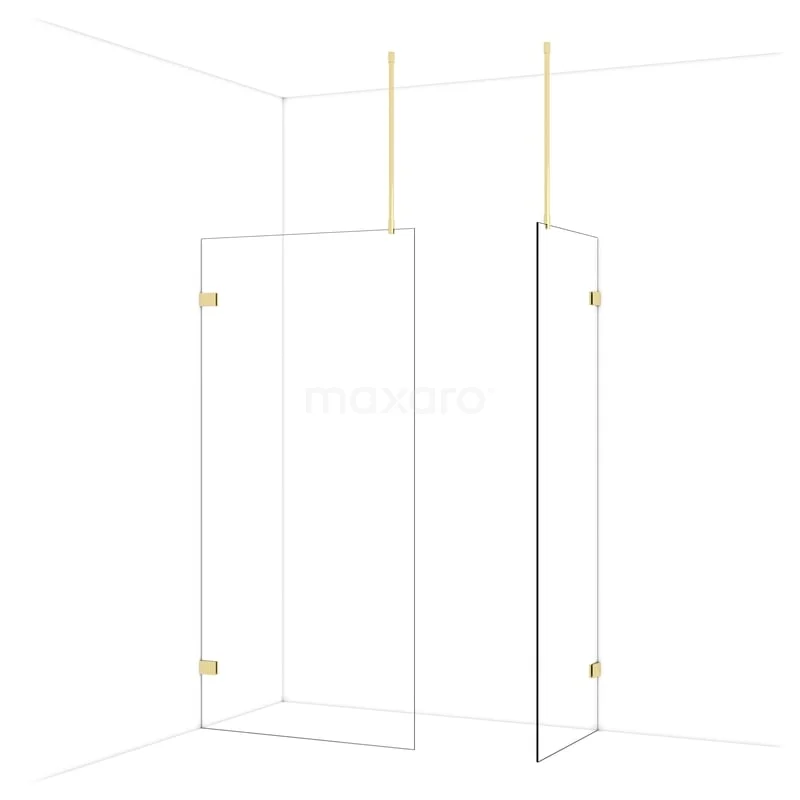 Diamond Inloopdouche | 100x70 cm Glanzend lichtgoud Helder glas 2 vaste wanden