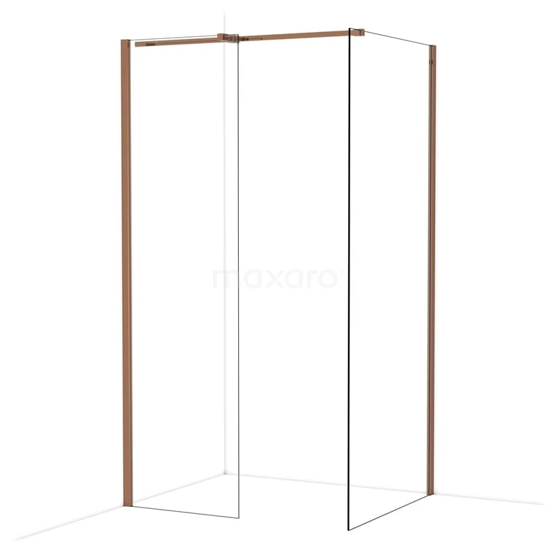 Diamond Inloopdouche | 90x60 cm Glanzend koper Helder glas 2 vaste wanden