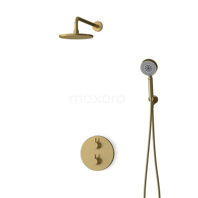 De doucheset heeft een luxueuze uitstraling door de gouden kleur en is ideaal om als accent toe te passen in uw badkamer. Enkel de bedieningsknoppen en de hand- en regendouche zijn zichtbaar bij de inbouwset. Hierdoor ervaart u een ruimtelijk effect. Daarnaast creëert de ronde vormgeving een elegante look-and-feel. Met deze set haalt u een echte blikvanger in huis.