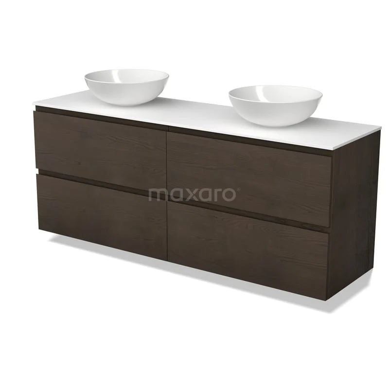 Modulo Plato Plus Vanity units for countertop basin | 160 cm Espresso oak Handle-less front Solid surface worktop 4 drawers