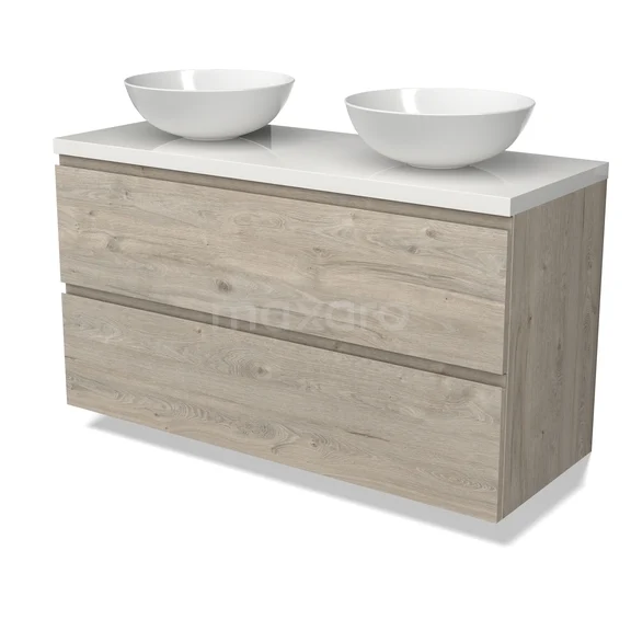 Modulo Plato Vanity units for countertop basin | 120 cm Light grey oak Handle-less front High-gloss white worktop 2 Stacked drawers