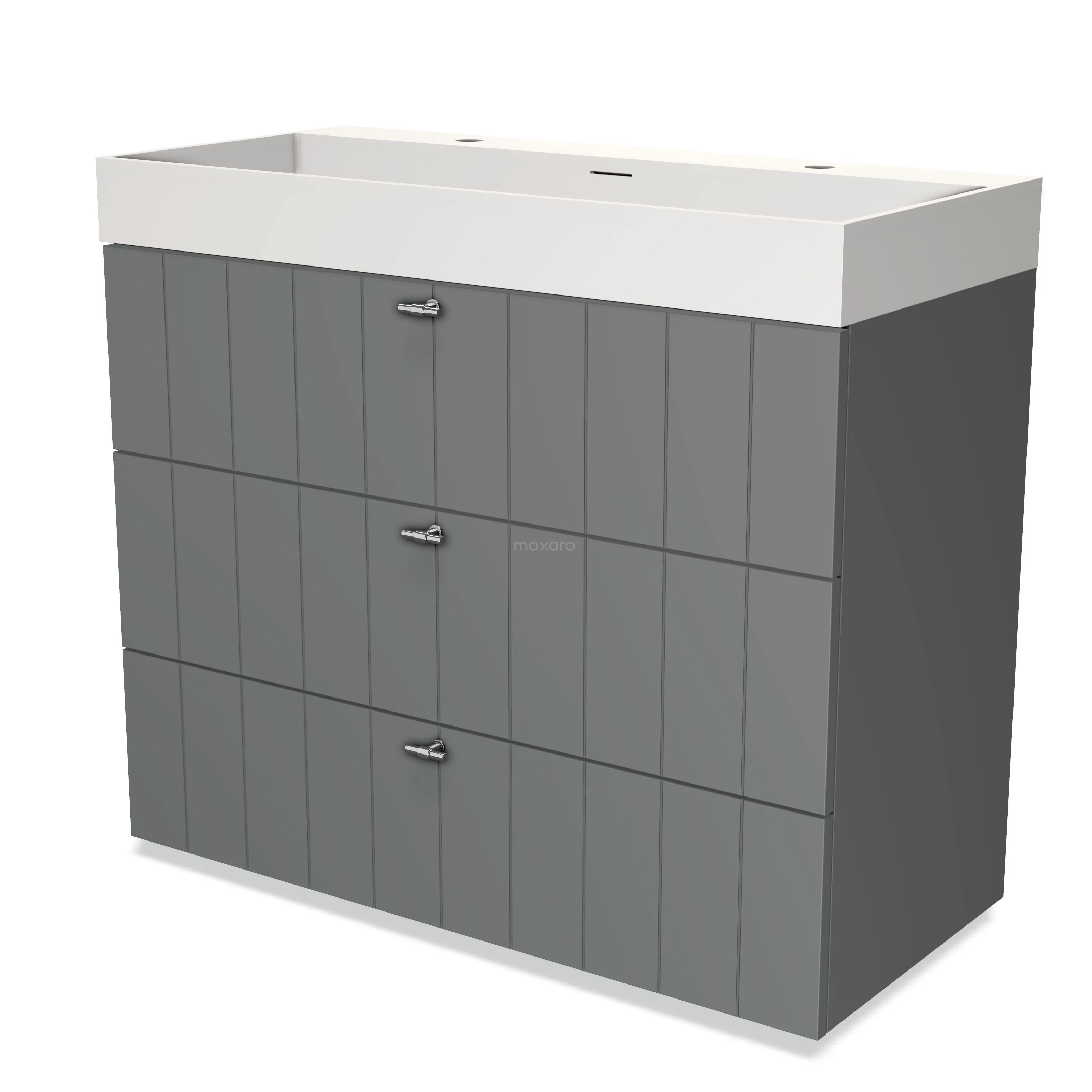 Within our Bathroom unit range, you can choose from a large selection of ready-made vanity units. These have been carefully put together for you by our product specialists. In addition, you can design your own Maxaro vanity unit using our handy compiler. You have the option of various sizes, colours, front designs and basin types. Choose a matching basin tap and complete your vanity units with basin. In addition to vanity units for countertop wash basins, Maxaro also offers vanity units for countertop wash basins.
