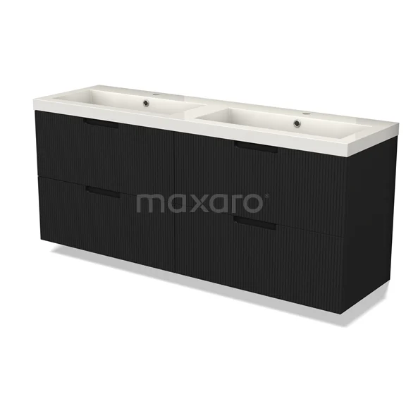 Bathroom furniture with sink | 160 cm Matte black Line front Mineral marble 4 drawers