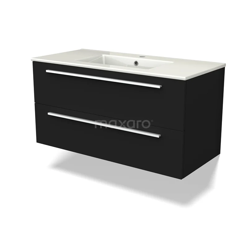 Canto Bathroom furniture with sink | 100 cm Black front Ceramic 2 Stacked drawers