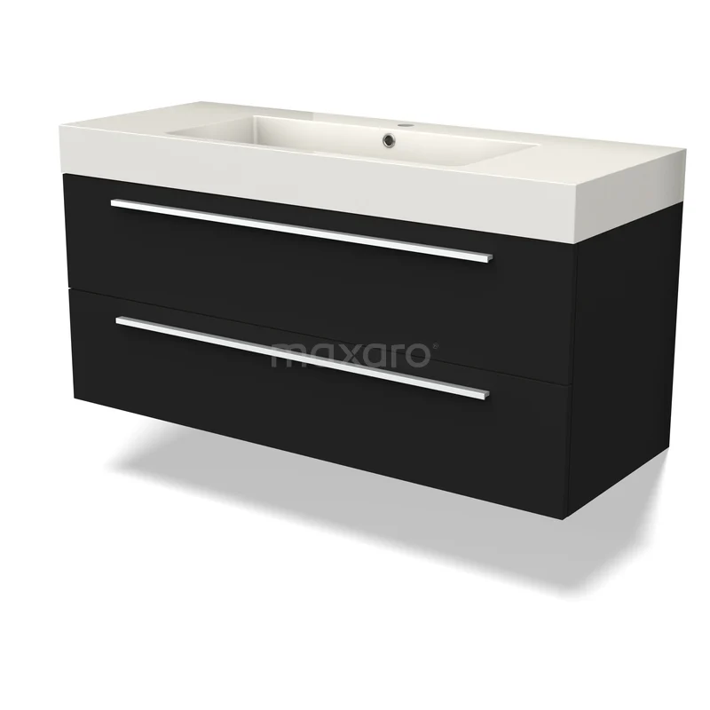 Canto Bathroom furniture with sink | 120 cm Black front Mineral marble 2 Stacked drawers