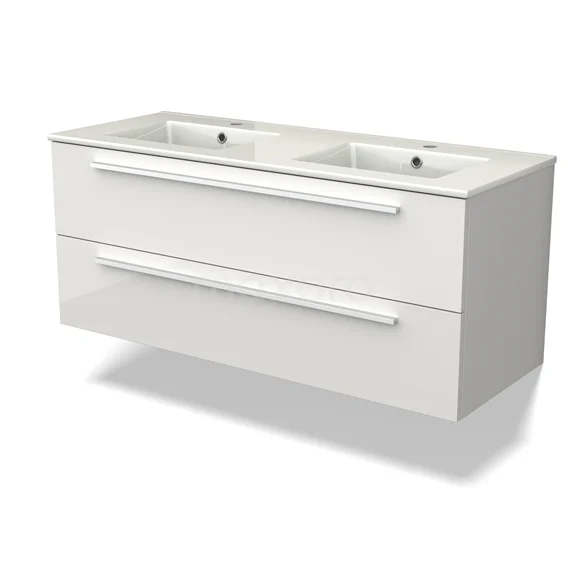 Canto Bathroom furniture with sink | 120 cm High-gloss white front Ceramic 2 Stacked drawers