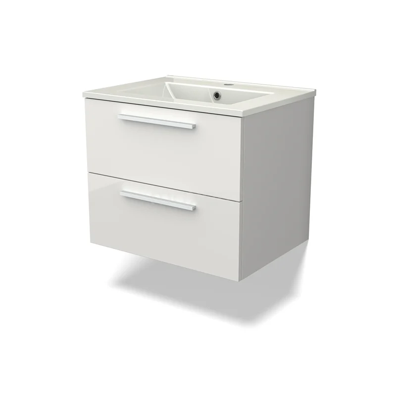 Canto Bathroom furniture with sink | 60 cm High-gloss white front Ceramic 2 Stacked drawers