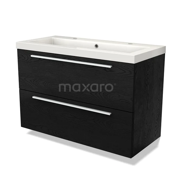 Modulo Bathroom furniture with sink | 100 cm Black oak Flat front Mineral marble 2 Stacked drawers