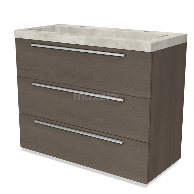 Modulo Bathroom furniture with sink | 100 cm Dark brown oak Flat front Concrete 3 drawers