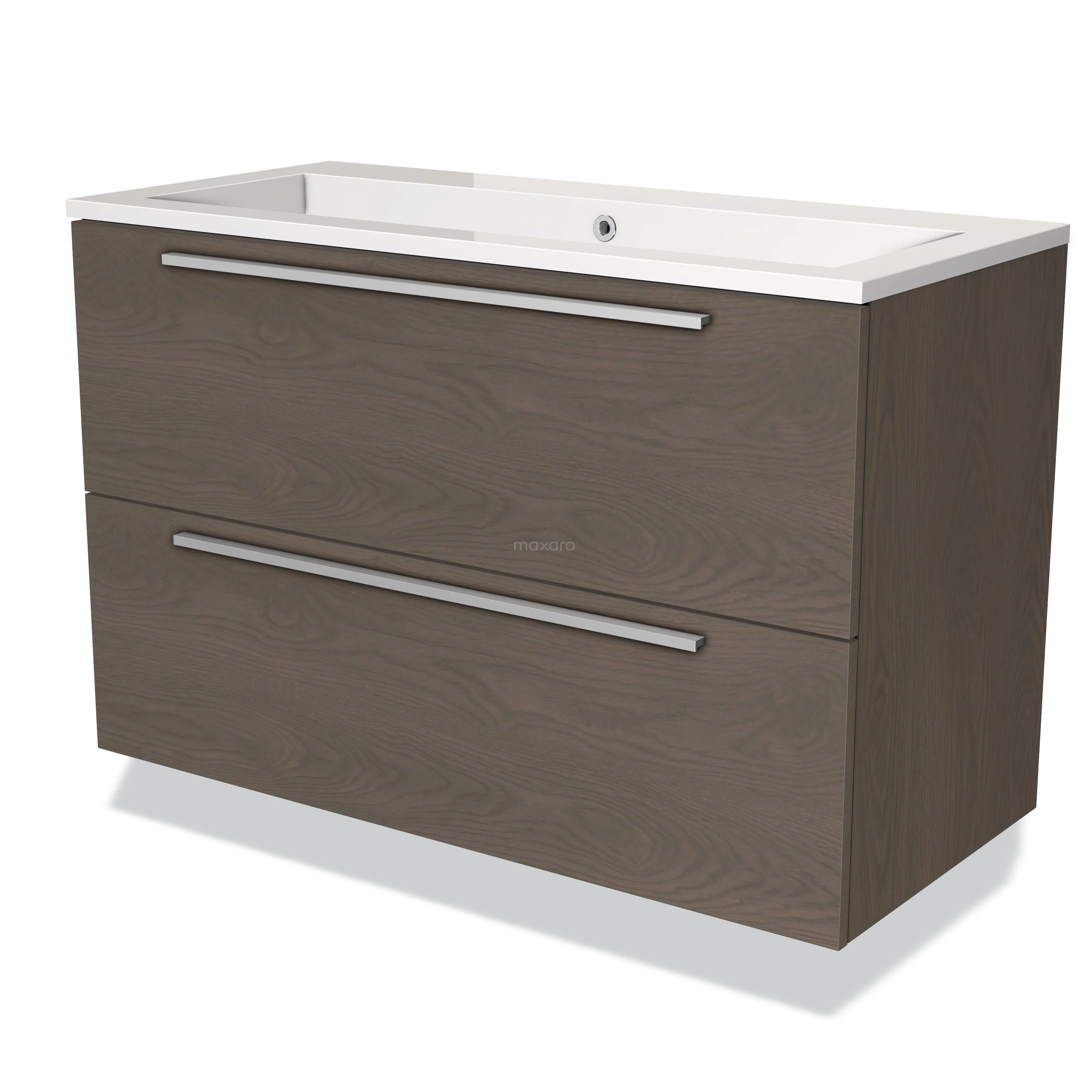 Modulo Bathroom furniture with sink | 100 cm Dark brown oak Flat front Mineral marble 2 Stacked drawers