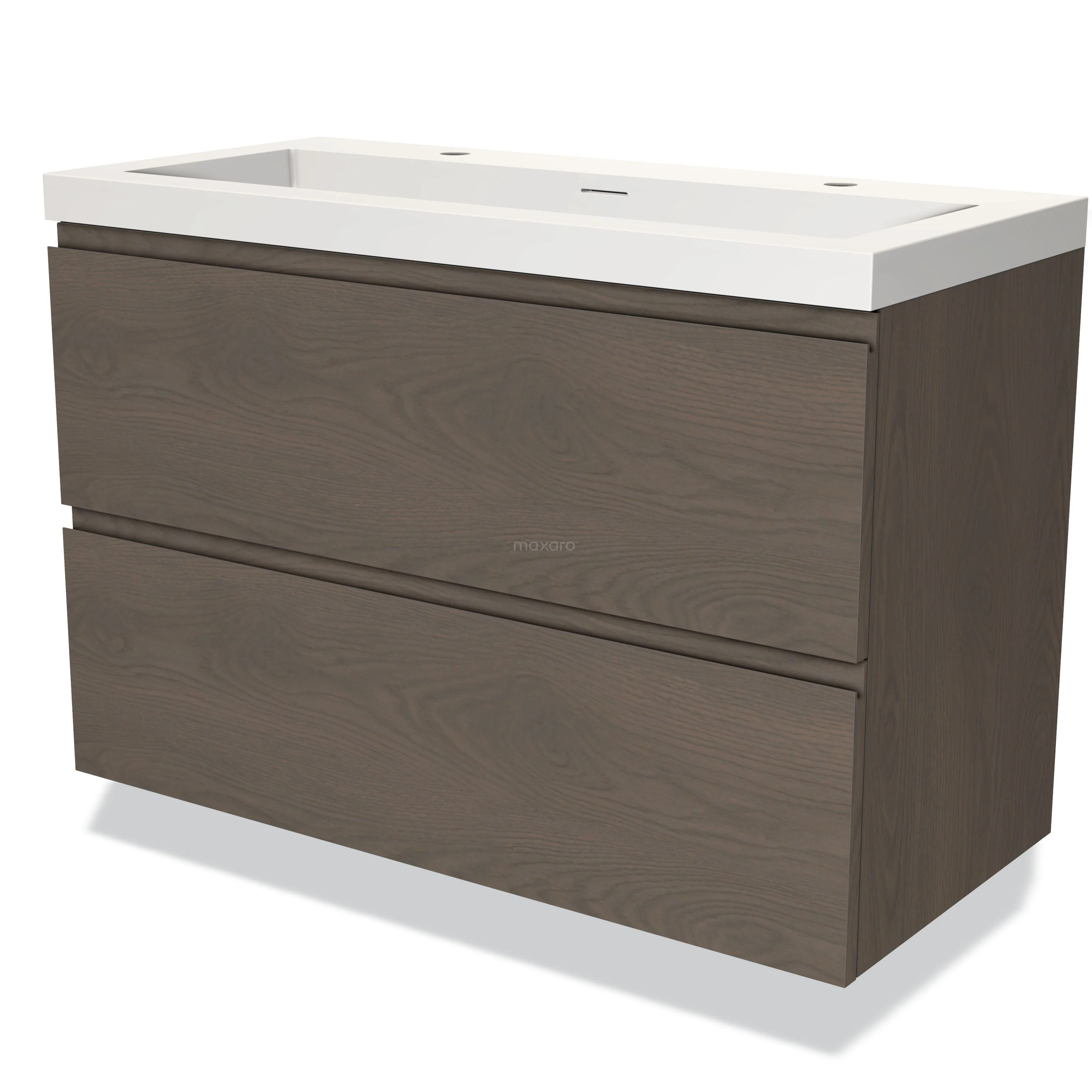 Modulo Bathroom furniture with sink | 100 cm Dark brown oak Handle-less front Solid surface 2 Stacked drawers