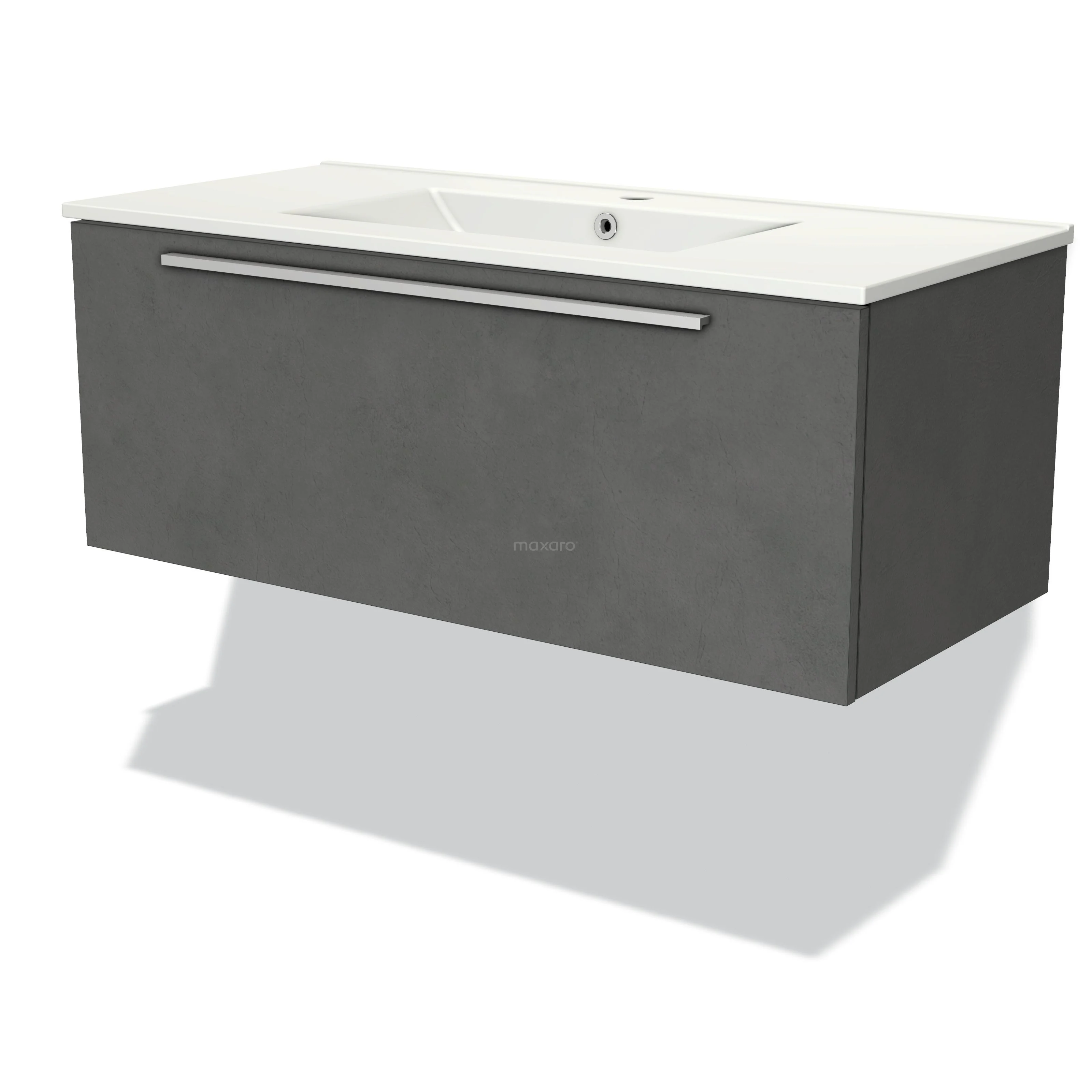 Modulo Bathroom furniture with sink | 100 cm Dark grey concrete Flat front Ceramic 1 drawer