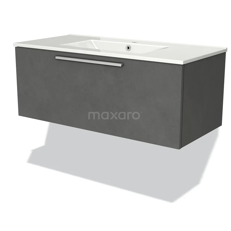 Modulo Bathroom furniture with sink | 100 cm Dark grey concrete Flat front Ceramic 1 drawer