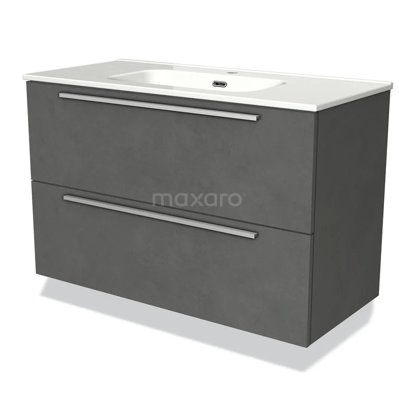 Modulo Bathroom furniture with sink | 100 cm Dark grey concrete Flat front Ceramic 2 Stacked drawers