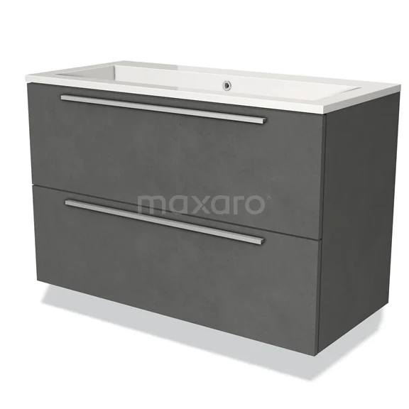Modulo Bathroom furniture with sink | 100 cm Dark grey concrete Flat front Mineral marble 2 Stacked drawers