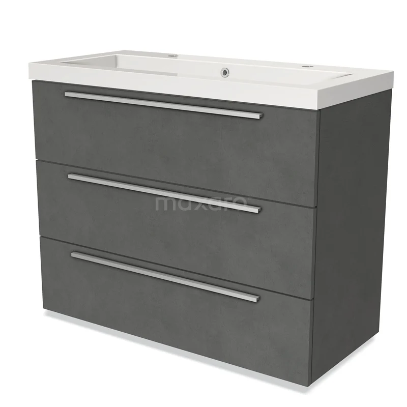 Modulo Bathroom furniture with sink | 100 cm Dark grey concrete Flat front Mineral marble 3 drawers