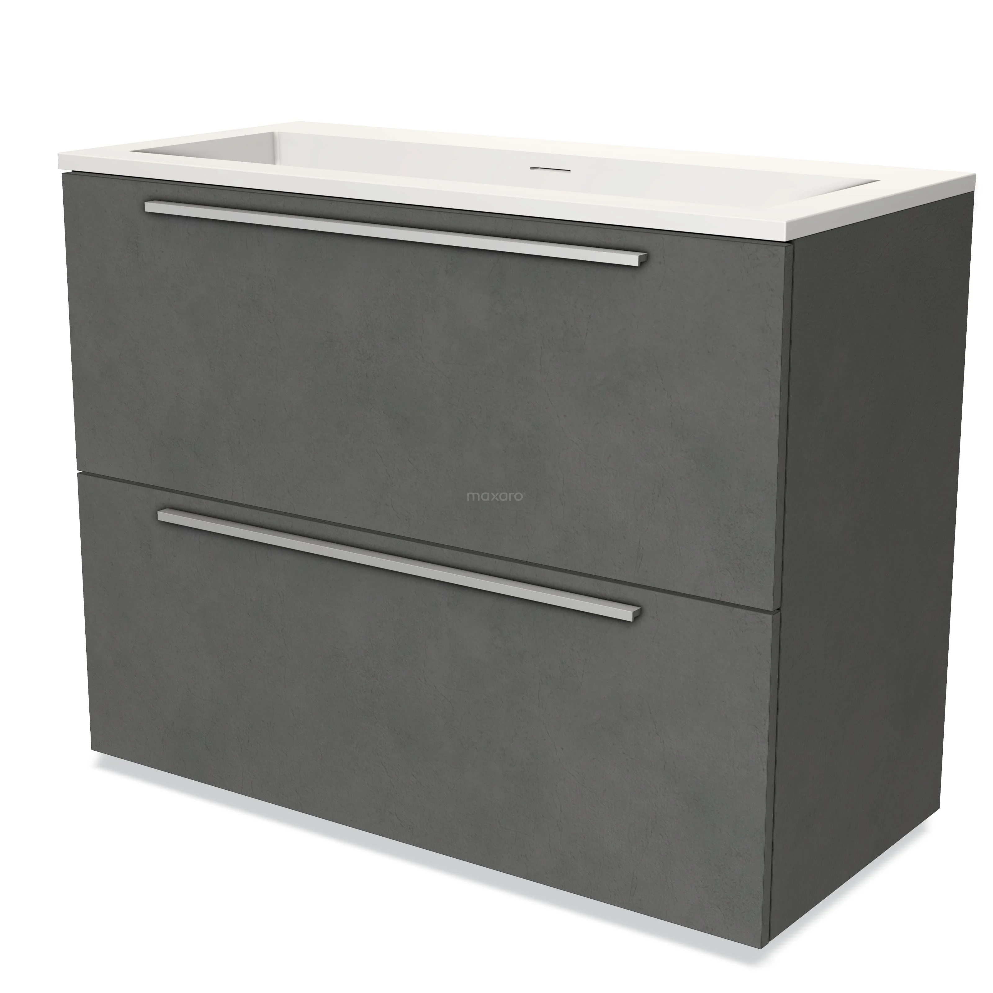 Modulo Bathroom furniture with sink | 100 cm Dark grey concrete Flat front Solid surface 2 stacked drawers under each other