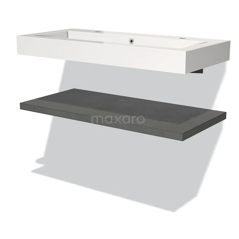 Stylish design Thanks to its beautiful design, this bathroom unit will be the eye-catcher of your bathroom. The basin worktop is finished in dark grey concrete. This tough concrete look gives the interior an industrial touch. The white Basin adds a fresh accent.