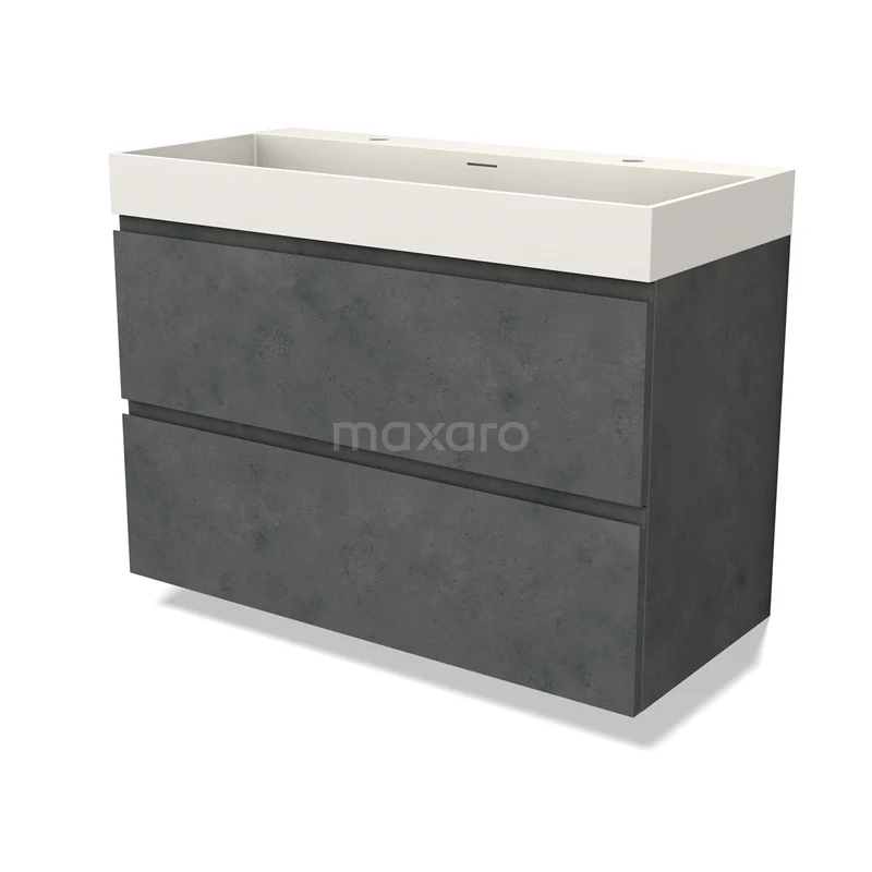Modulo Bathroom furniture with sink | 100 cm Dark grey concrete Handle-less front Solid surface 2 Stacked drawers