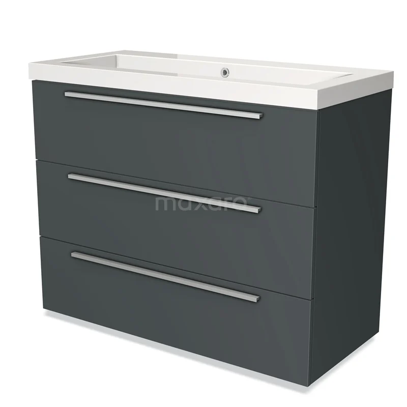 Modulo Bathroom furniture with sink | 100 cm Dark grey Flat front Mineral marble 3 drawers