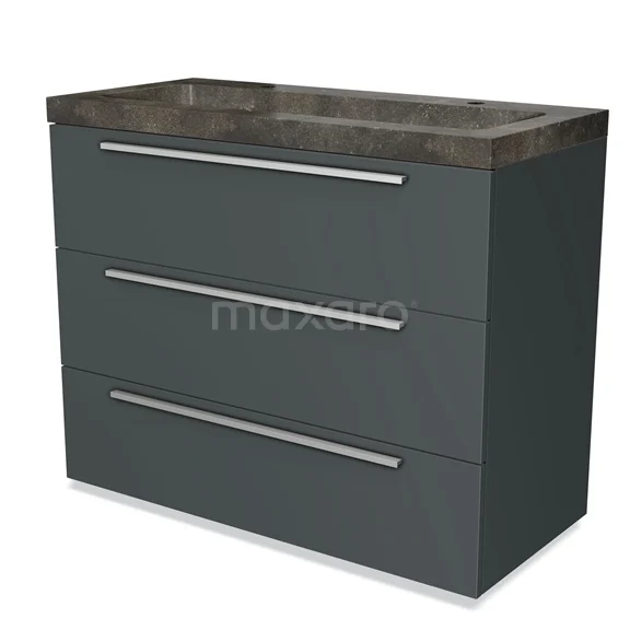 Modulo Bathroom furniture with sink | 100 cm Dark grey Flat front Natural stone 3 drawers