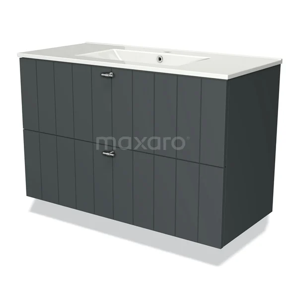 Modulo Bathroom furniture with sink | 100 cm Dark grey Slat front Ceramic 2 Stacked drawers