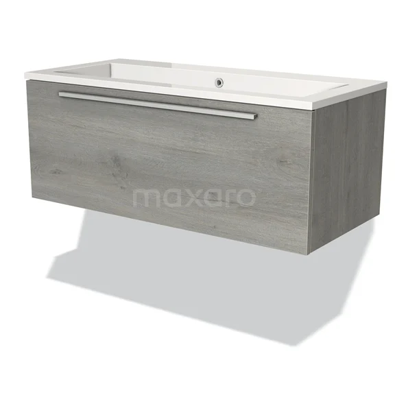 Modulo Bathroom furniture with sink | 100 cm Grey oak Flat front Mineral marble 1 drawer
