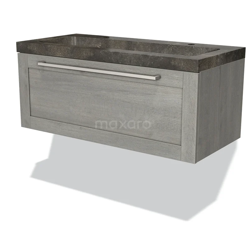 Modulo Bathroom furniture with sink | 100 cm Grey oak Frame front Natural stone 1 drawer