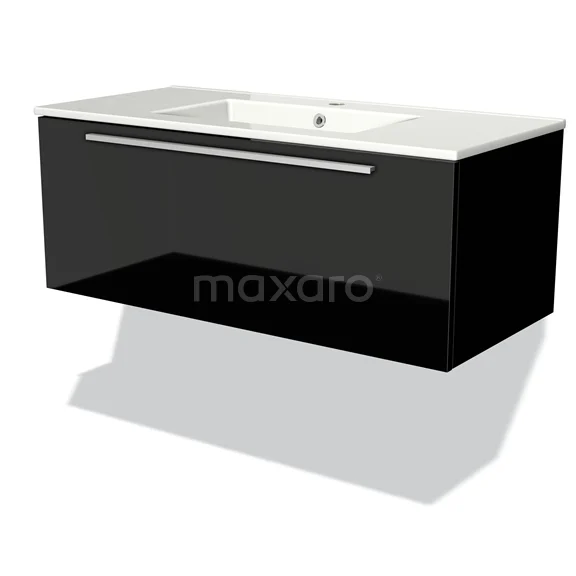 Modulo Bathroom furniture with sink | 100 cm High-gloss black Flat front Ceramic 1 drawer