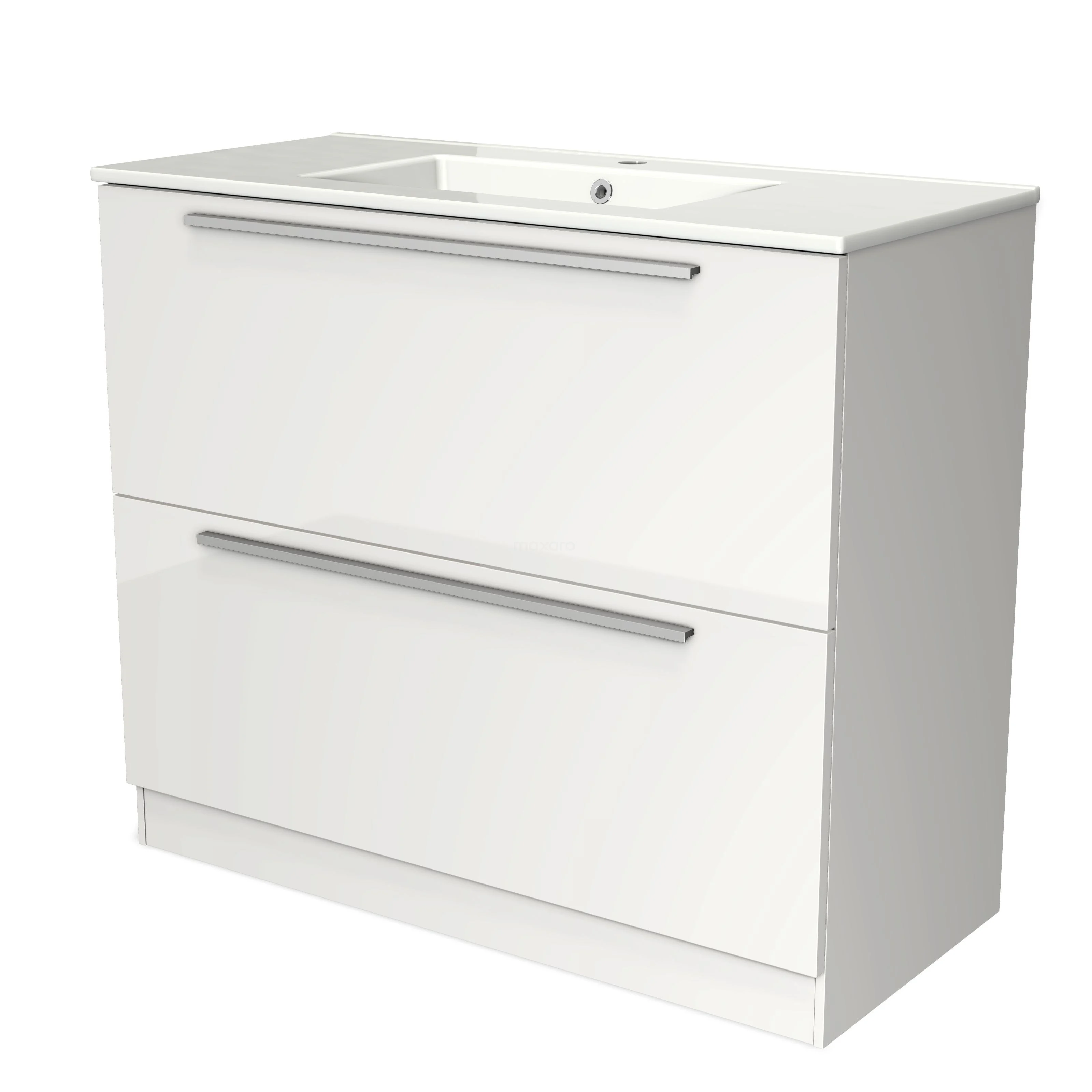 Modulo Bathroom furniture with sink | 100 cm High-gloss white Flat front Ceramic 2 high drawers standing drawers under each other