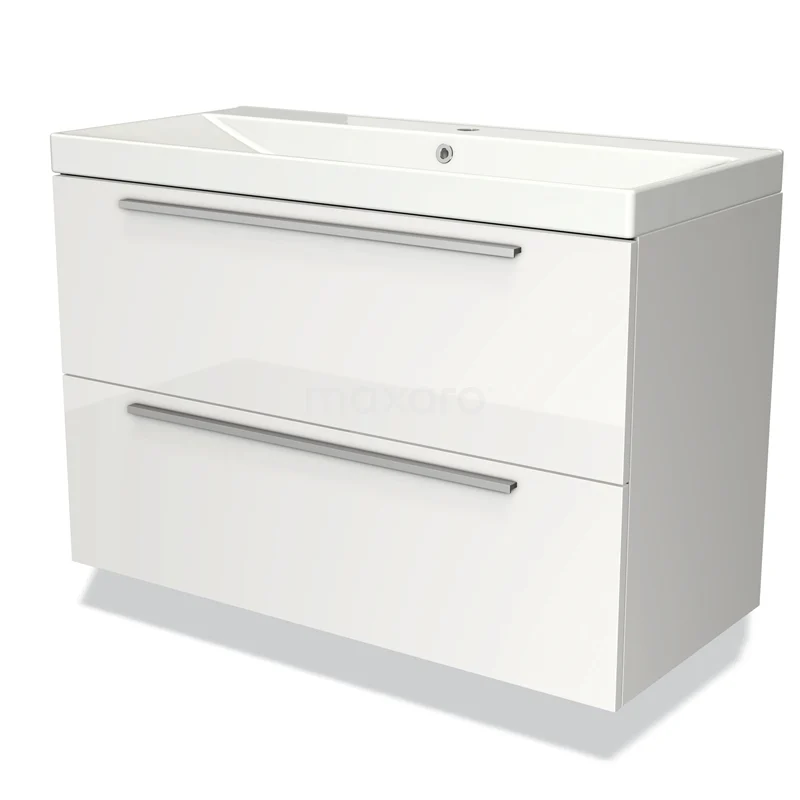 Modulo Bathroom furniture with sink | 100 cm High-gloss white Flat front Ceramic 2 Stacked drawers
