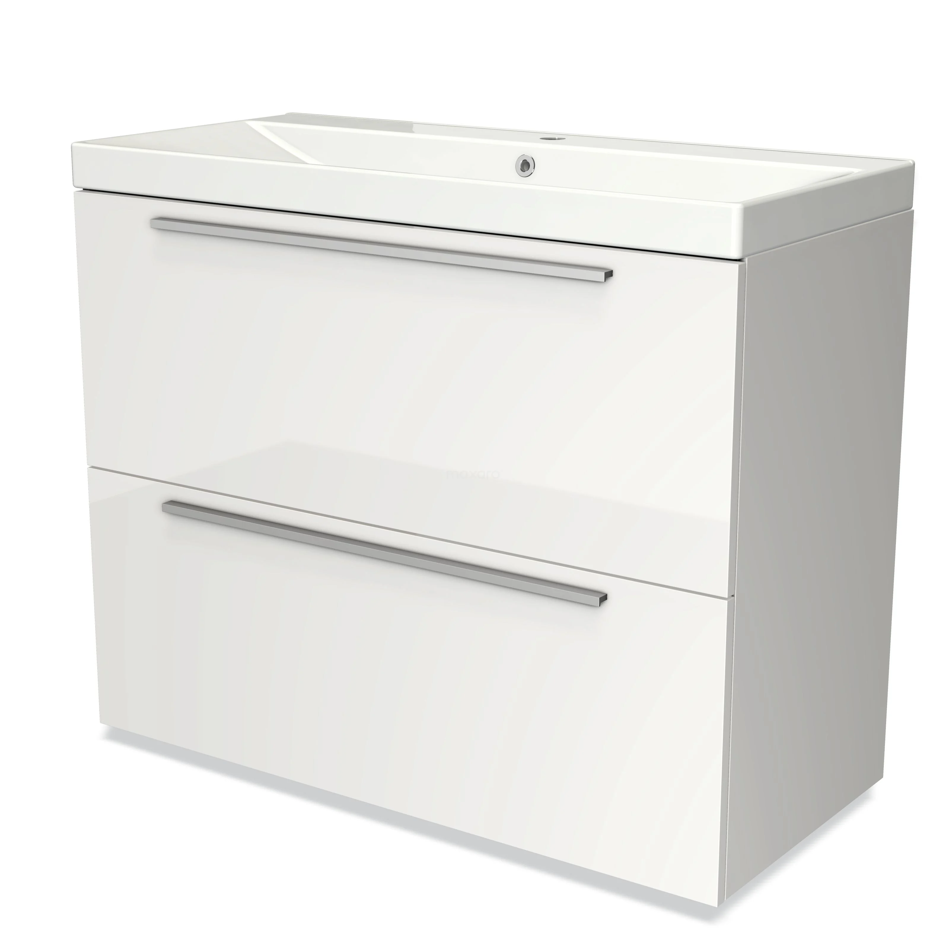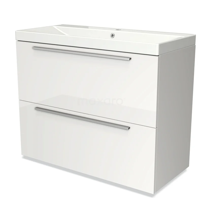 Modulo Bathroom furniture with sink | 100 cm High-gloss white Flat front Ceramic 2 stacked drawers under each other