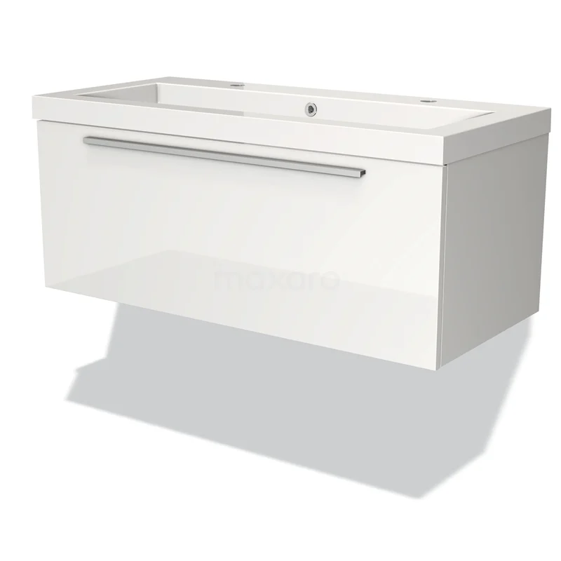 Modulo Bathroom furniture with sink | 100 cm High-gloss white Flat front Mineral marble 1 drawer