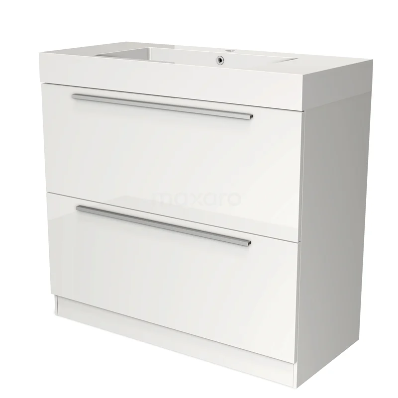 Modulo Bathroom furniture with sink | 100 cm High-gloss white Flat front Mineral marble 2 high drawers standing drawers under each other