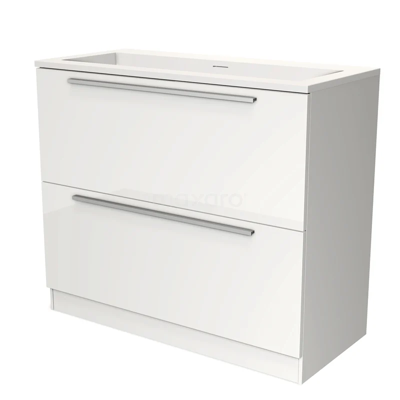 Modulo Bathroom furniture with sink | 100 cm High-gloss white Flat front Solid surface 2 high drawers standing drawers under each other