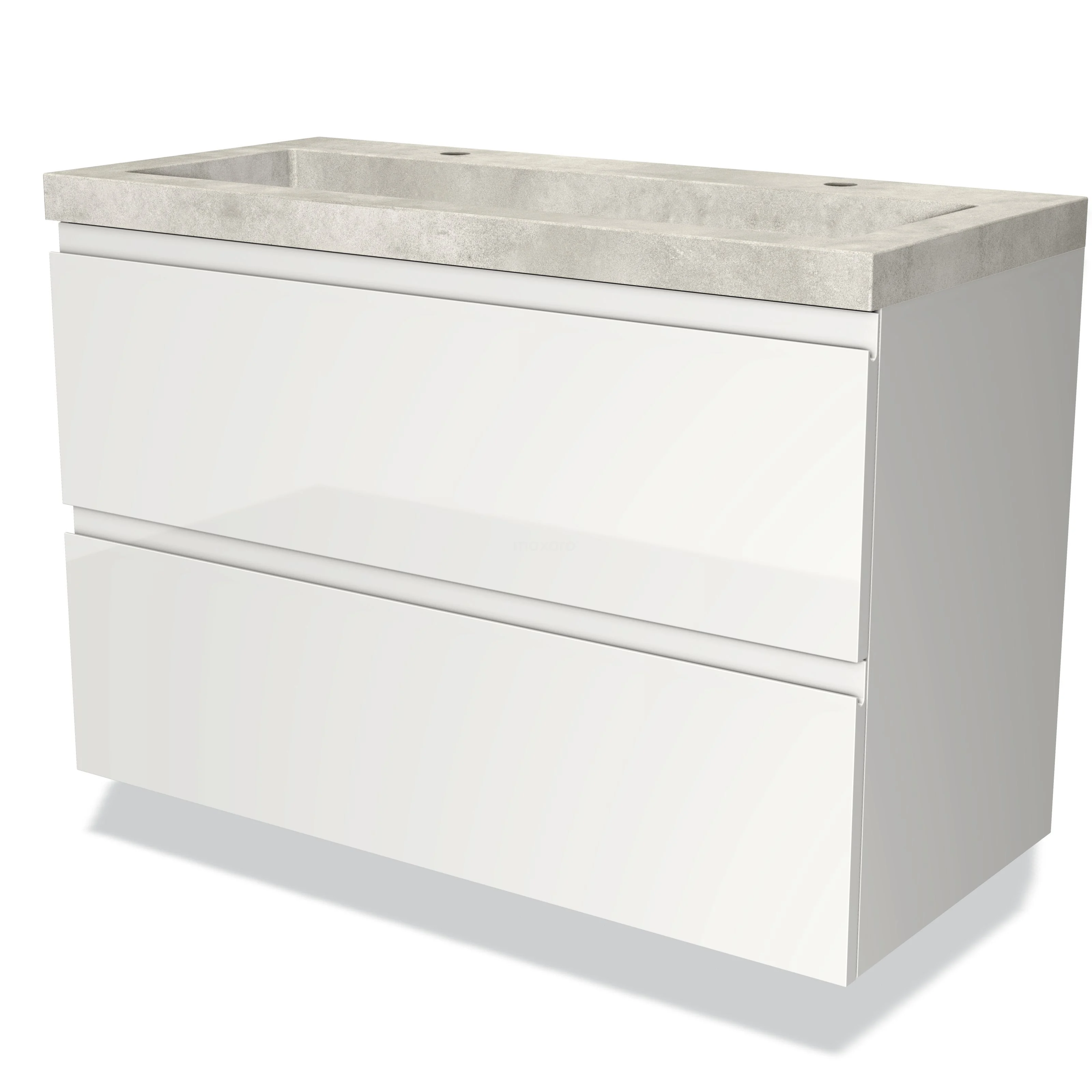 Modulo Bathroom furniture with sink | 100 cm High-gloss white Handle-less front Concrete 2 Stacked drawers