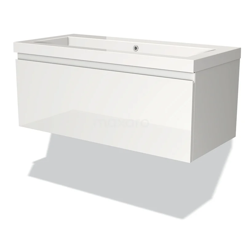 Modulo Bathroom furniture with sink | 100 cm High-gloss white Handle-less front Mineral marble 1 drawer