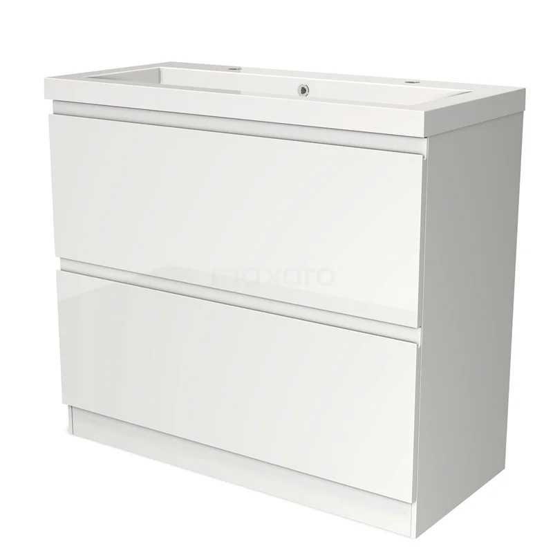Modulo Bathroom furniture with sink | 100 cm High-gloss white Handle-less front Mineral marble 2 high drawers standing drawers under each other