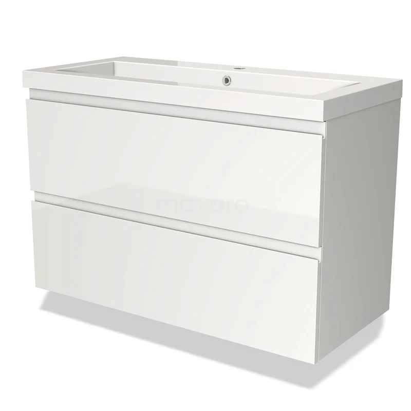 Modulo Bathroom furniture with sink | 100 cm High-gloss white Handle-less front Mineral marble 2 Stacked drawers