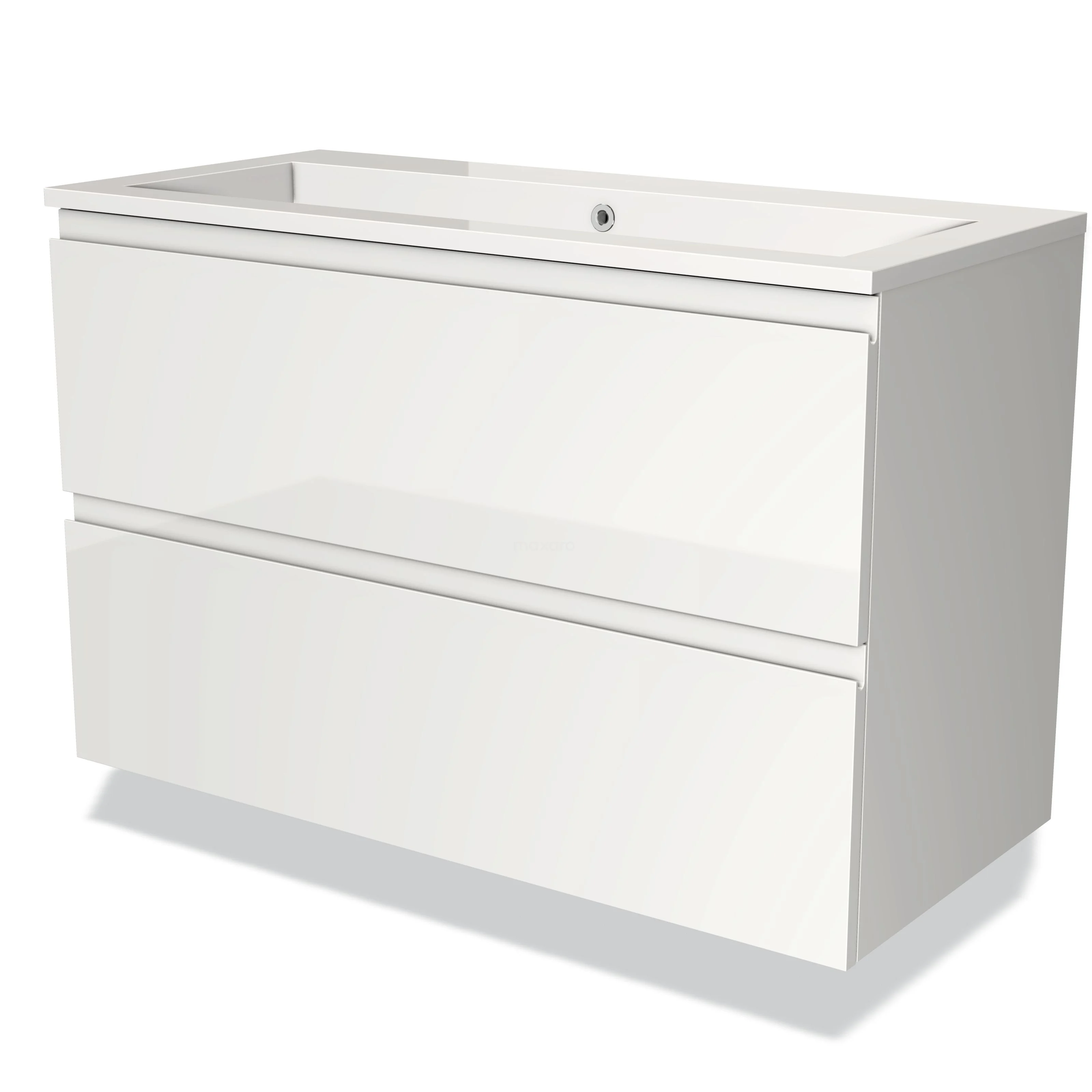 Modulo Bathroom furniture with sink | 100 cm High-gloss white Handle-less front Mineral marble 2 Stacked drawers