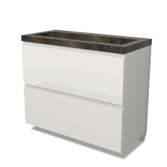 Modulo Bathroom furniture with sink | 100 cm High-gloss white Handle-less front Natural stone 2 stacked drawers under each other